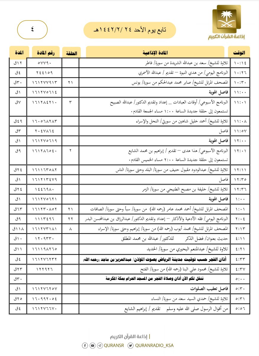 إذاعة القرآن الكريم On Twitter هيكل تلاوات وبرامج إذاعة القرآن الكريم ليوم الجمعة 1441 7 4