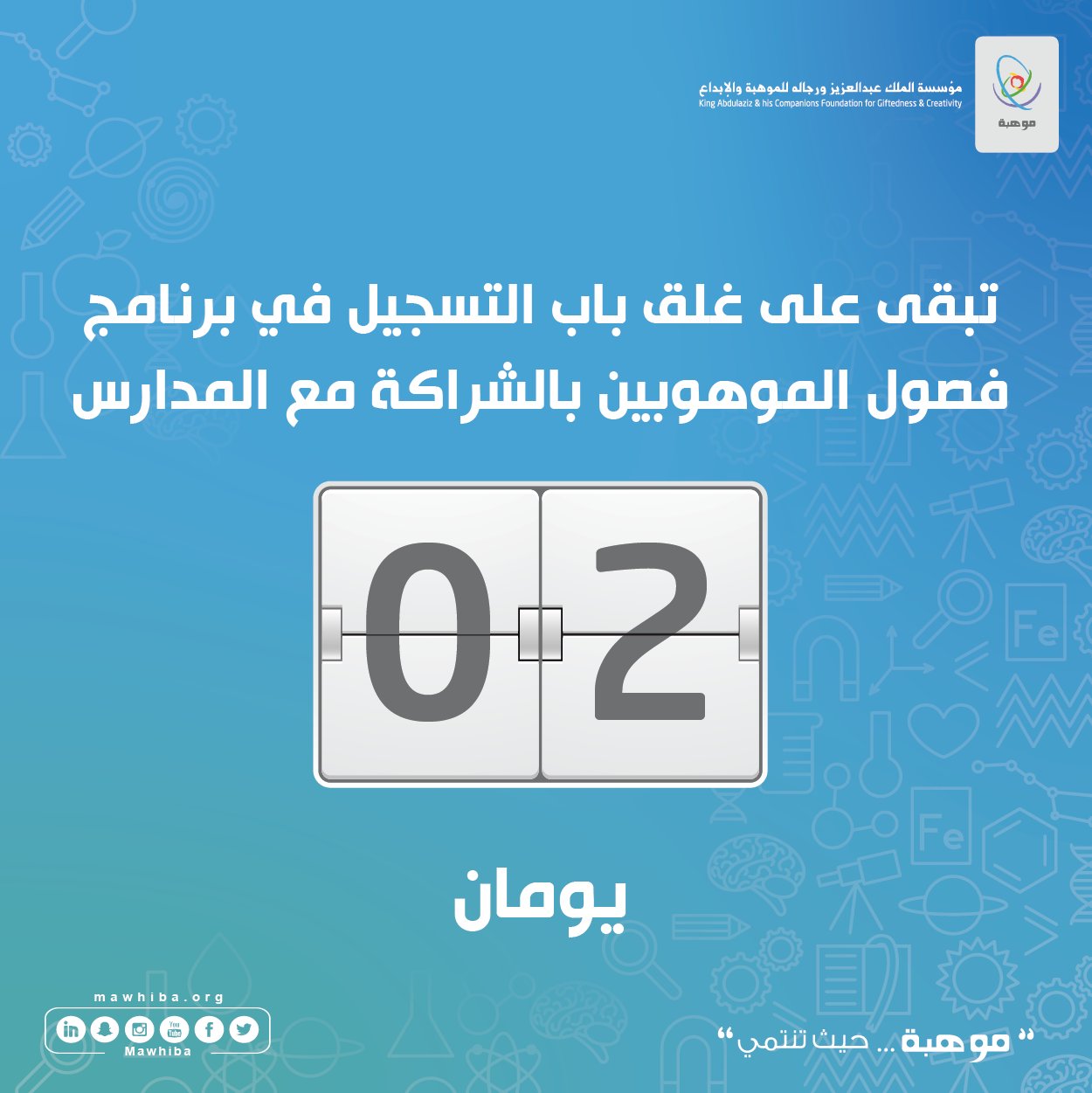 موهبة Sur Twitter تبقى يومان على انتهاء التسجيل في برنامج فصول الموهوبين بالشراكة مع المدارس علما بأن القبول النهائي للرغبة التي سجلها الطلبة في النظام سيكون حسب الطاقة الاستيعابية للمدارس حيث الاختيار