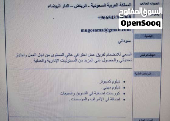 سعودي ابحث عن وظيفة مكة أو جدة أو الطائف 129587464 السوق المفتوح