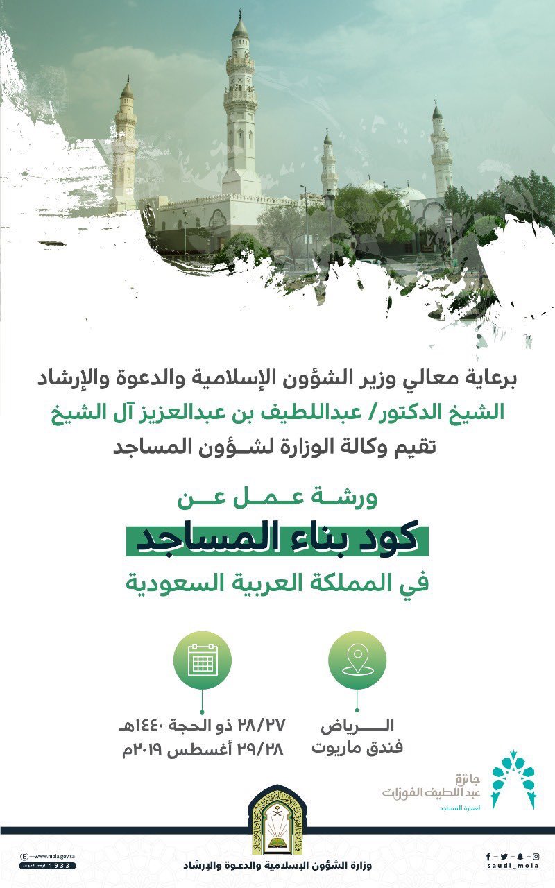 وزارة الشؤون الإسلامية Pa Twitter وزارة الشؤون الإسلامية والدعوة والإرشاد ممثلة بوكالة الوزارة لشؤون المساجد تدعو الراغبين في المشاركة بورشة عمل كود بناء المساجد بالمملكة التسجيل عبر الرابط Https T Co Wqu3ezbifn Https T Co Cu6zgkfb7i