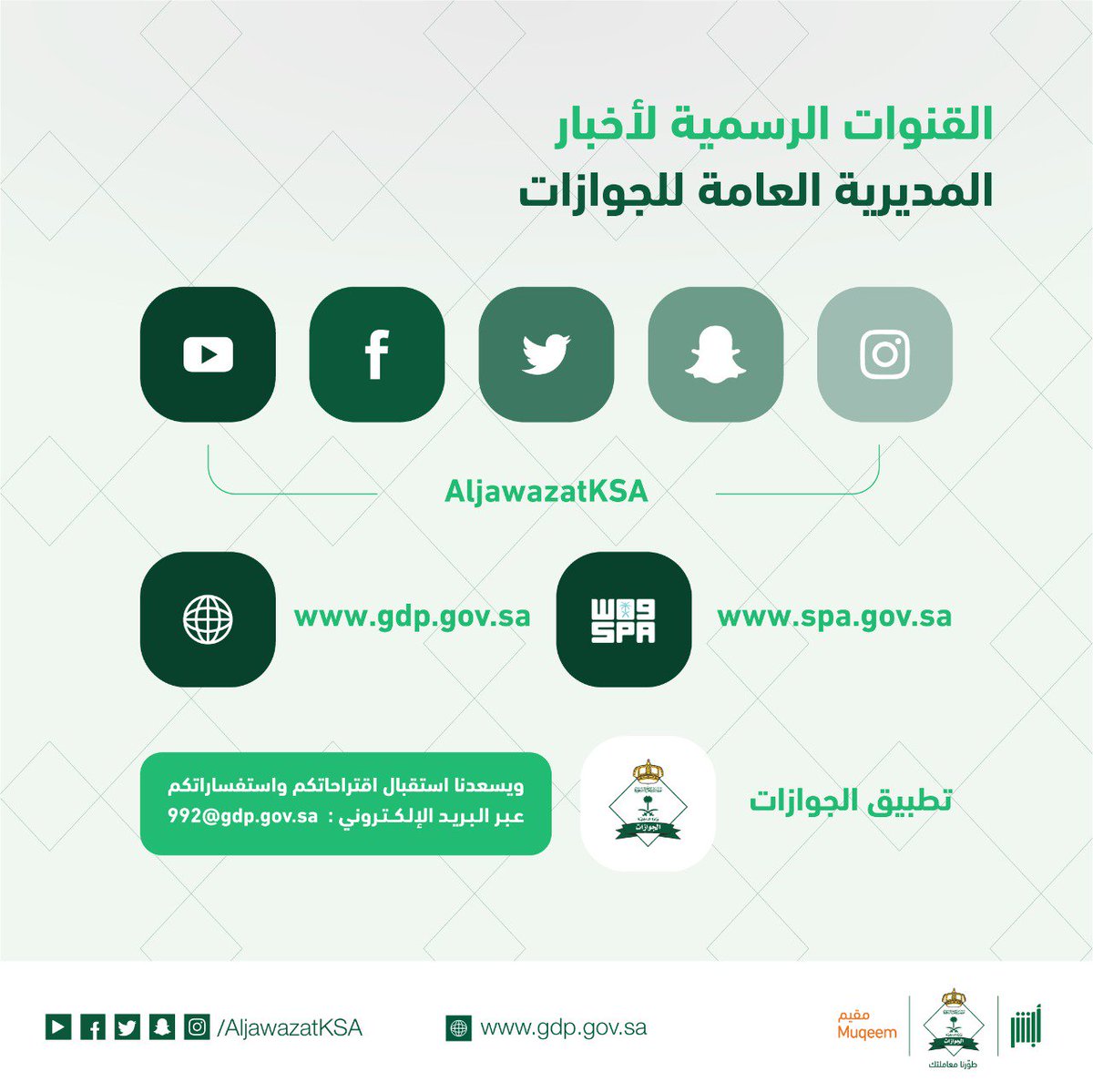 الجوازات السعودية A Twitter في حال وجود اي اعلانات رسمية من المديرية العامة للجوازات سيتم الإعلان عنها عبر القنوات الرسمية نسعد بتواصلك Https T Co 7o1m5vws9e