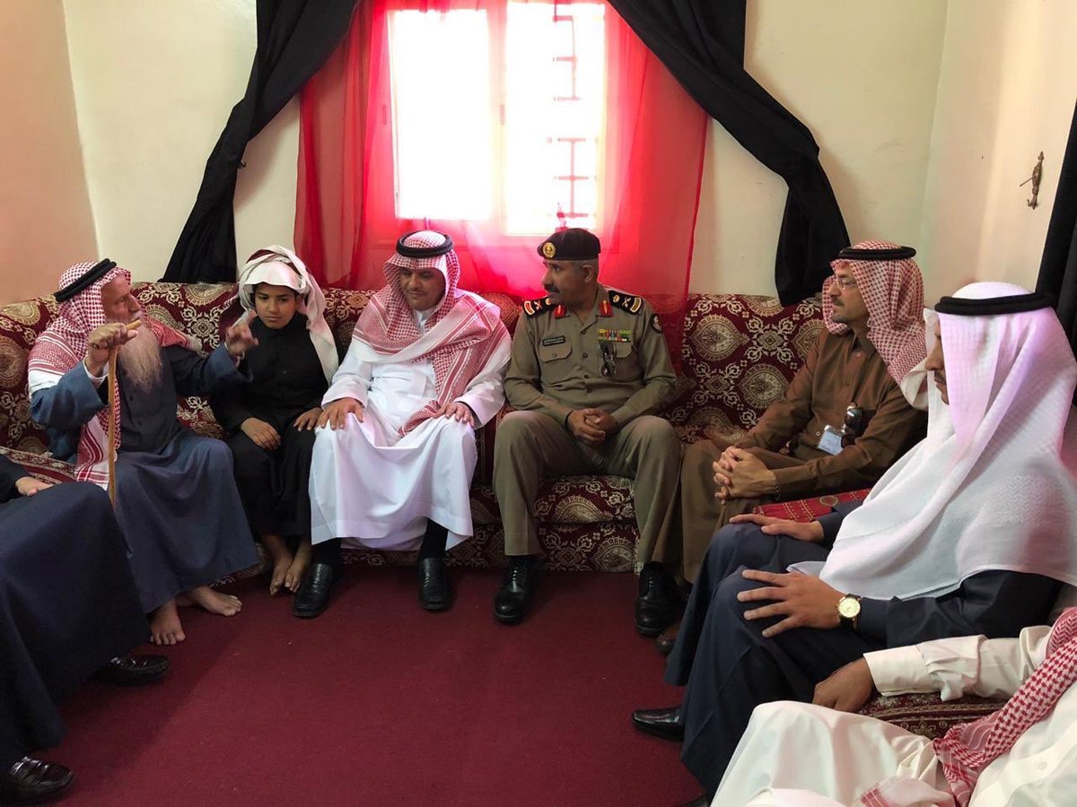إمارة منطقة عسير على تويتر بتوجيه من الأمير تركي بن طلال أمير منطقة عسير قام وكيل إمارة المنطقة المهندس خالد الربيعة ومدير شرطة المنطقة وعدد من قيادات إمارة عسير بتقديم واجب العزاء لأسرة البطل