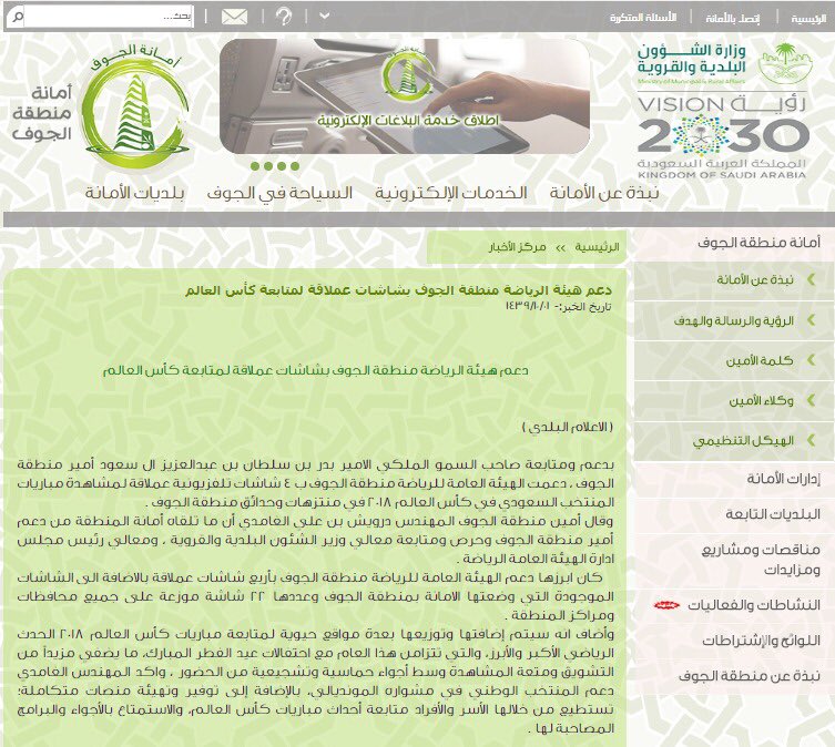 أمانة منطقة الجوف On Twitter دعم هيئة الرياضة منطقة الجوف بشاشات عملاقة لمتابعة كأس العالم ٢٠١٨ Https T Co 2pjeqh0vrk