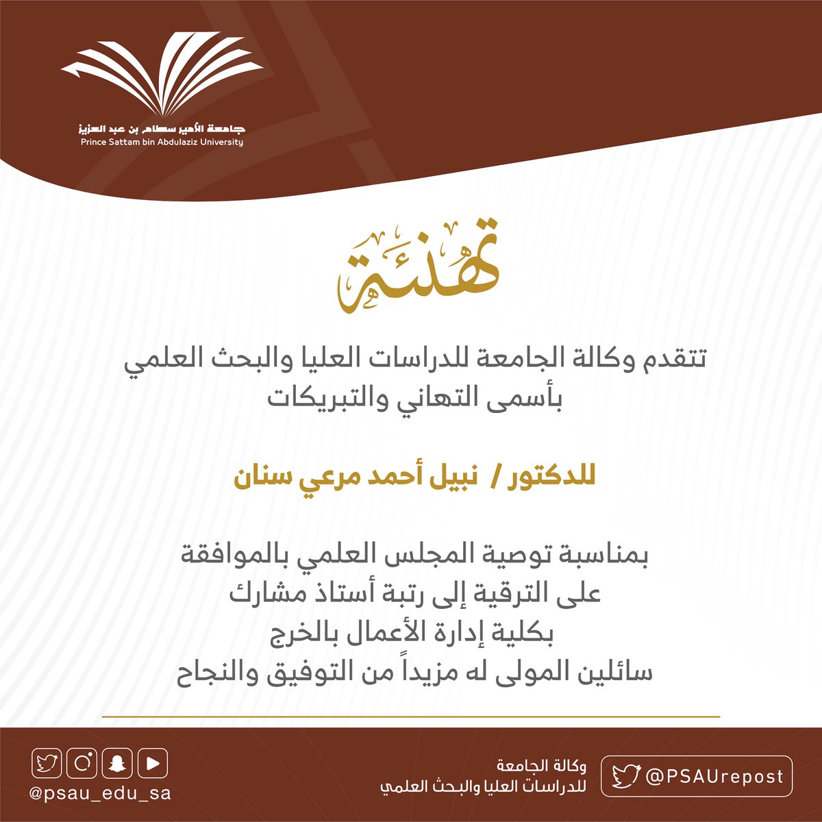 وكالة الجامعة للدراسات العليا والبحث العلمي Psaurepost Twitter