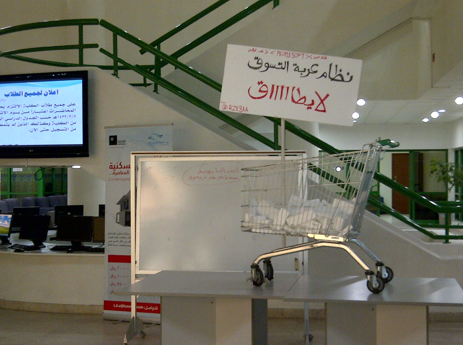 رزيقه على تويتر احتجاجا على نظام عربة التسوق بيبول سوفت لتسجيل المواد في جامعة الدمام قمت بهذا العمل الفني Uod Dammam Khobar Http T Co Ebtlwy33