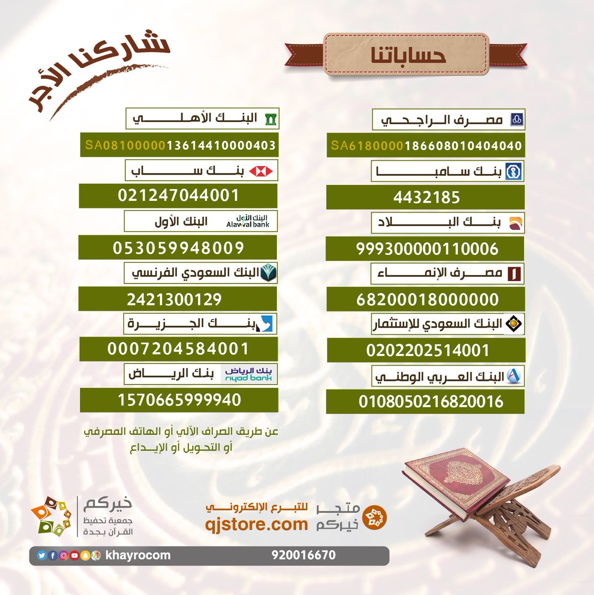 جمعية خيركم لتحفيظ القرآن بجدة On Twitter تفضلوا جميع أرقام حساباتنا البنكية