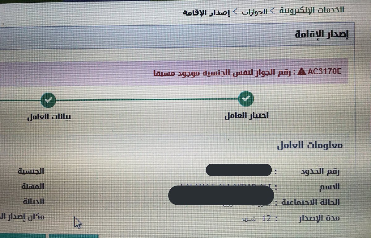 مبارك بن زعير A Twitter الأعزاء Aljawazatksa Epassportgovsa لدي طلب مكتمل لإصدار إقامة لكن عند آخر خطوة تظهر عبارة رقم الجواز لنفس الجنسيةموجود مسبقا ما الحل Https T Co Aningqvmgf