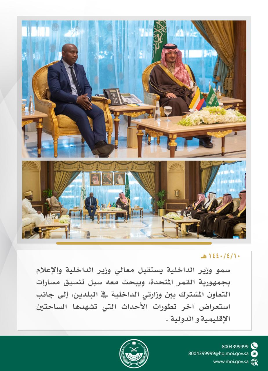 وزارة الداخلية No Twitter سمو وزير الداخلية يستقبل معالي وزير الداخلية والإعلام بجمهورية القمر المتحدة