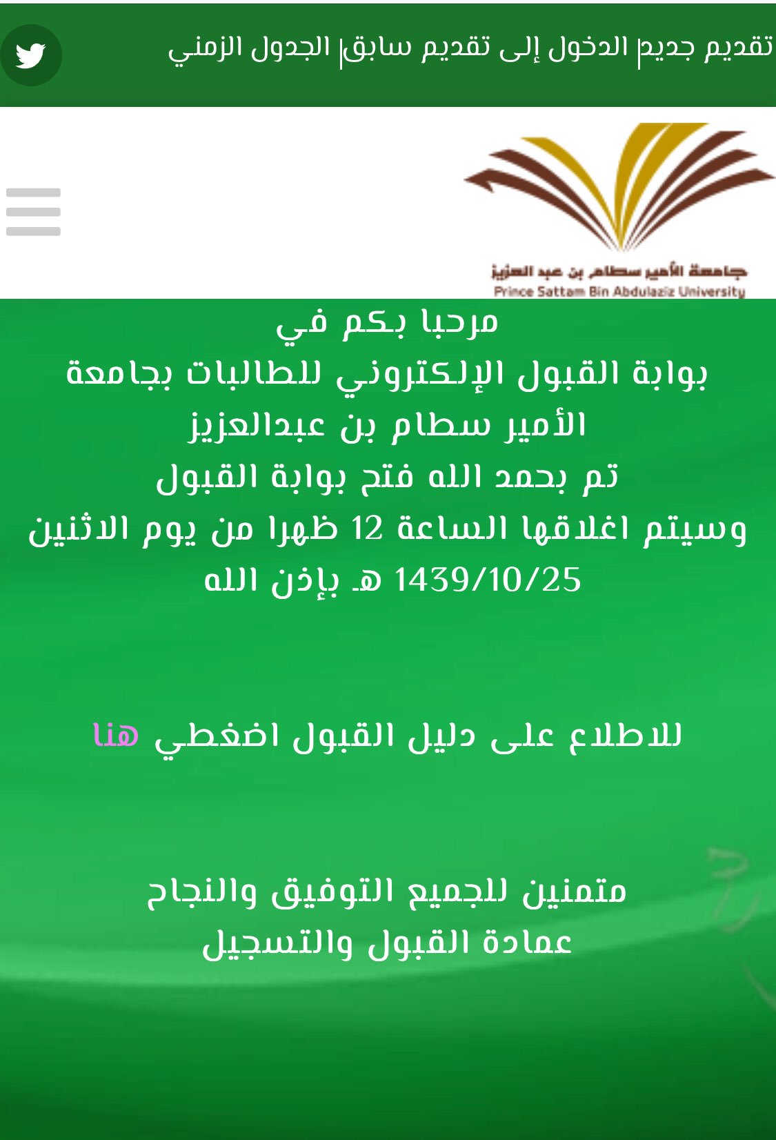 عمادة القبول والتسجيل على تويتر اعلان تم بحمد الله فتح بوابة القبول الإلكتروني للطالبات في جامعة الأمير سطام للتقديم عبر الرابط Https T Co Nvsphj4xbs Https T Co Lakpbx8v4a