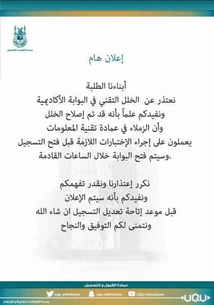 O Xrhsths عمادة القبول و التسجيل Sto Twitter الجدول الزمني للقبول في جامعة أم القرى