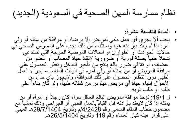 د خالد آل حاسن الغامدي On Twitter ٢ نصت المادة بعد فكرة التنبيه على بعد شرح الوضع العلاجي أو الجراحي و آثاره و لن يتم التنبيه الا بعد بيان الحالة و لن