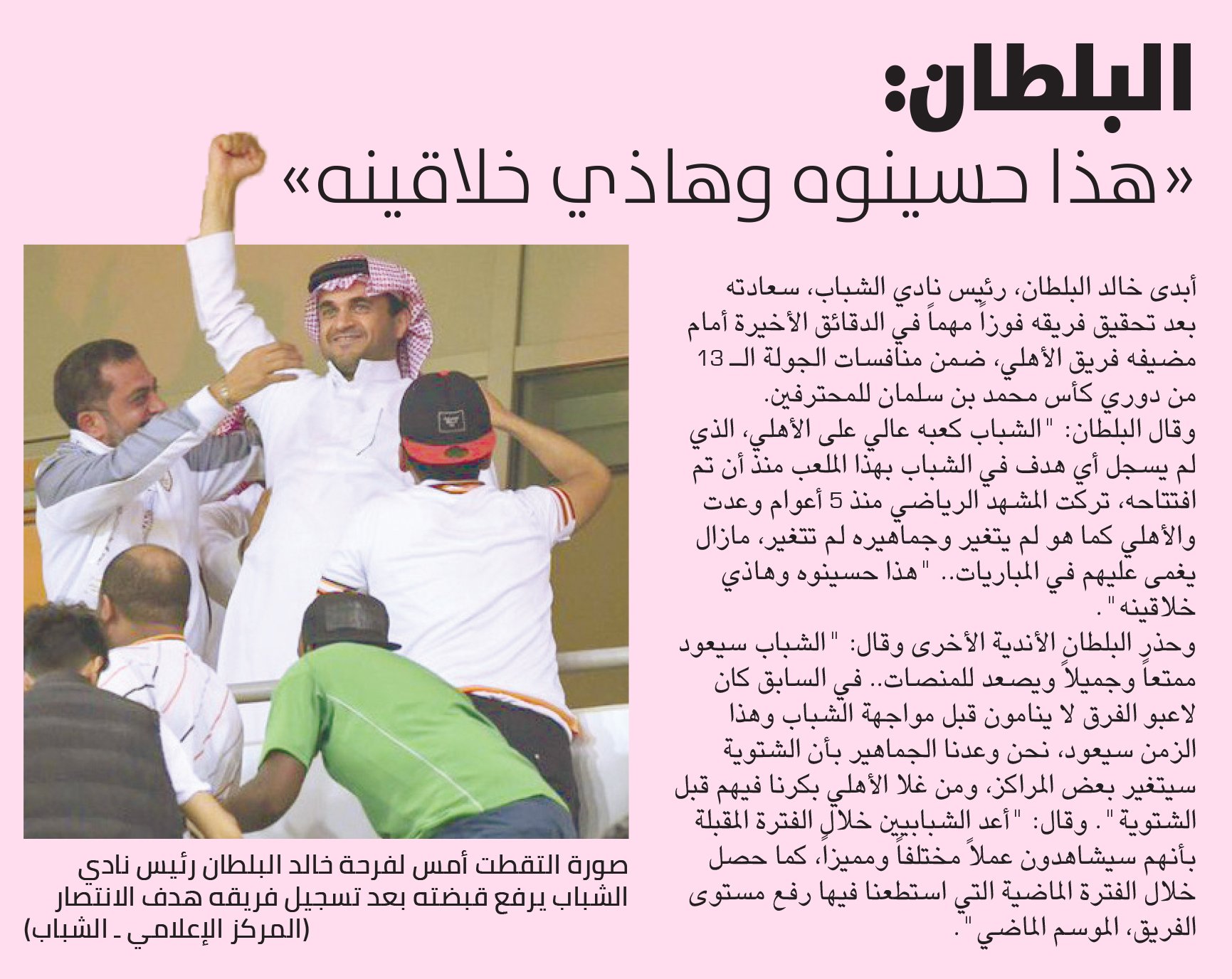 البلطان لـ الأهلاوية هذا حسينوه وهذي خلاقينه صحيفة صدى الالكترونية رياضة كوم