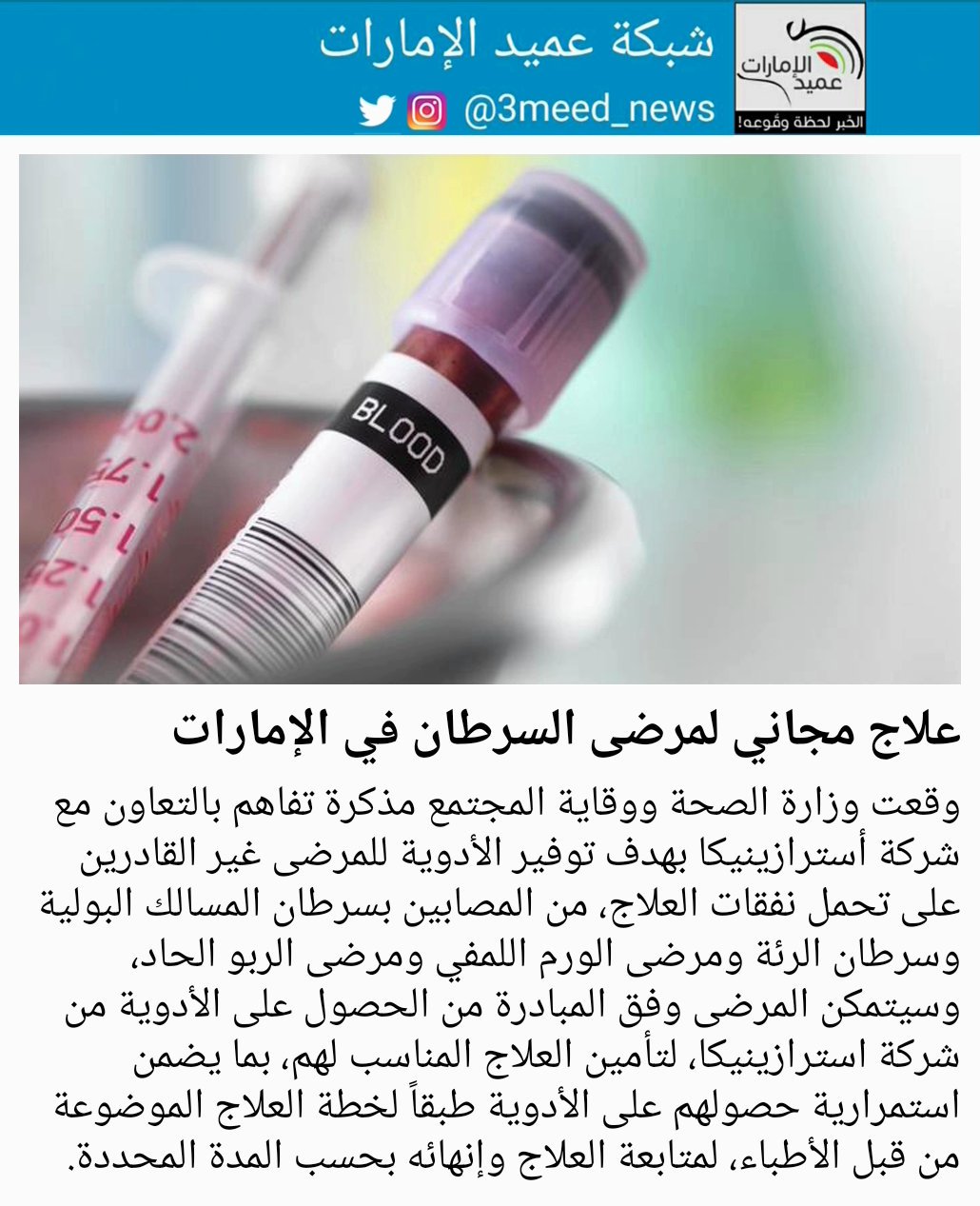 شبكة عميد الإمارات V Twitter وقعت وزارة الصحة ووقاية المجتمع مذكرة تفاهم بالتعاون مع شركة أسترازينيكا بهدف توفير الأدوية للمرضى غير القادرين على تحمل نفقات العلاج من المصابين بسرطان المسالك البولية وسرطان