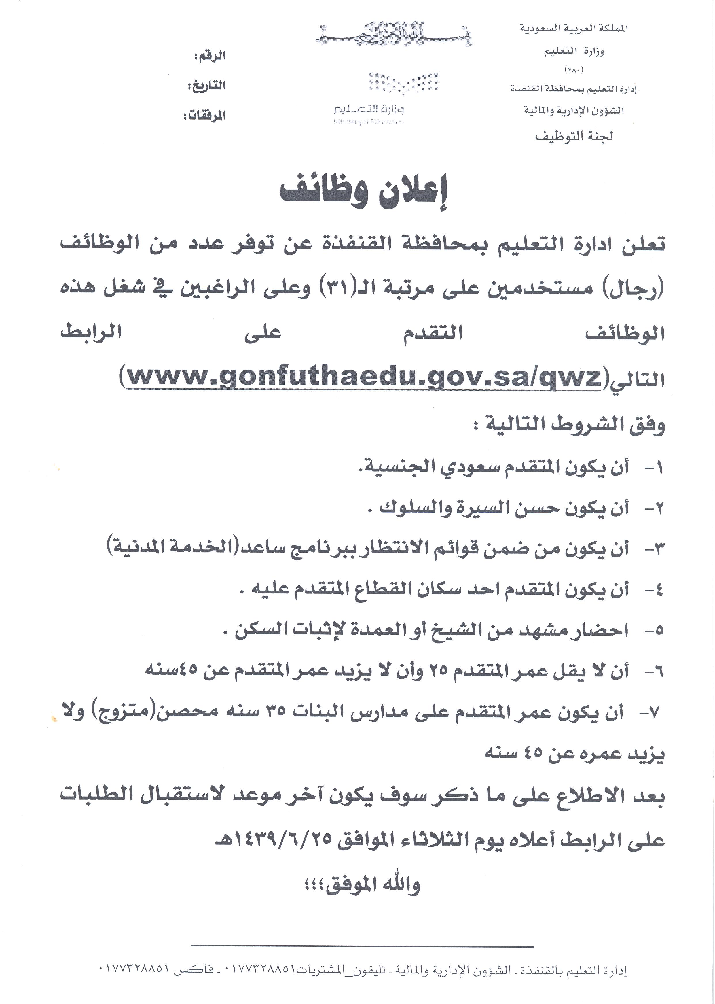 وظائف شاغرة للمستخدمين لدى تعليم القنفذة صحيفة المواطن الإلكترونية