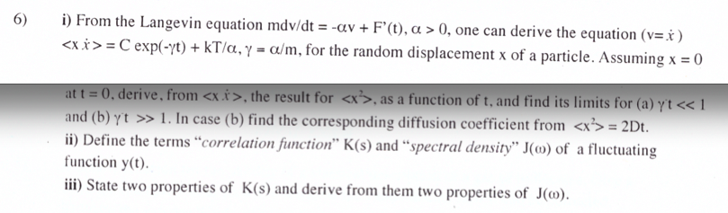 I From The Langevin Equation M Dv Dt Alpha V Chegg Com