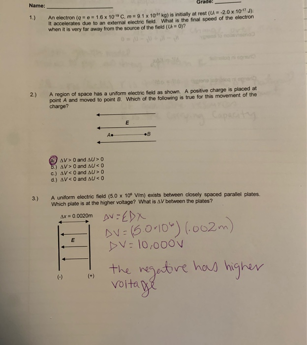Name Grade 1 An Electron A E 1 6 X 10 C Chegg Com